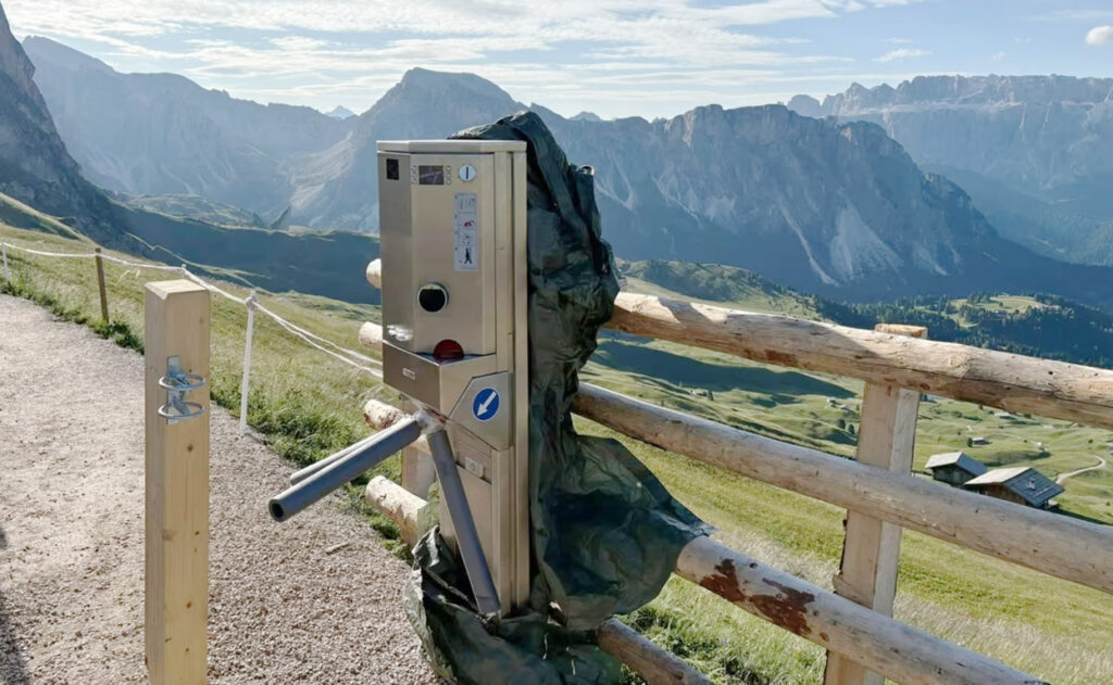 Som svar på tilstrømningen har frustrerte lokale bønder satt opp bommer, der turister må betale fem euro (ca. 65 kroner) for å få tilgang til flere «Instagram-vennlige» steder, inkludert fjellkjedene Seceda og Drei Zinnen (Tre topper).